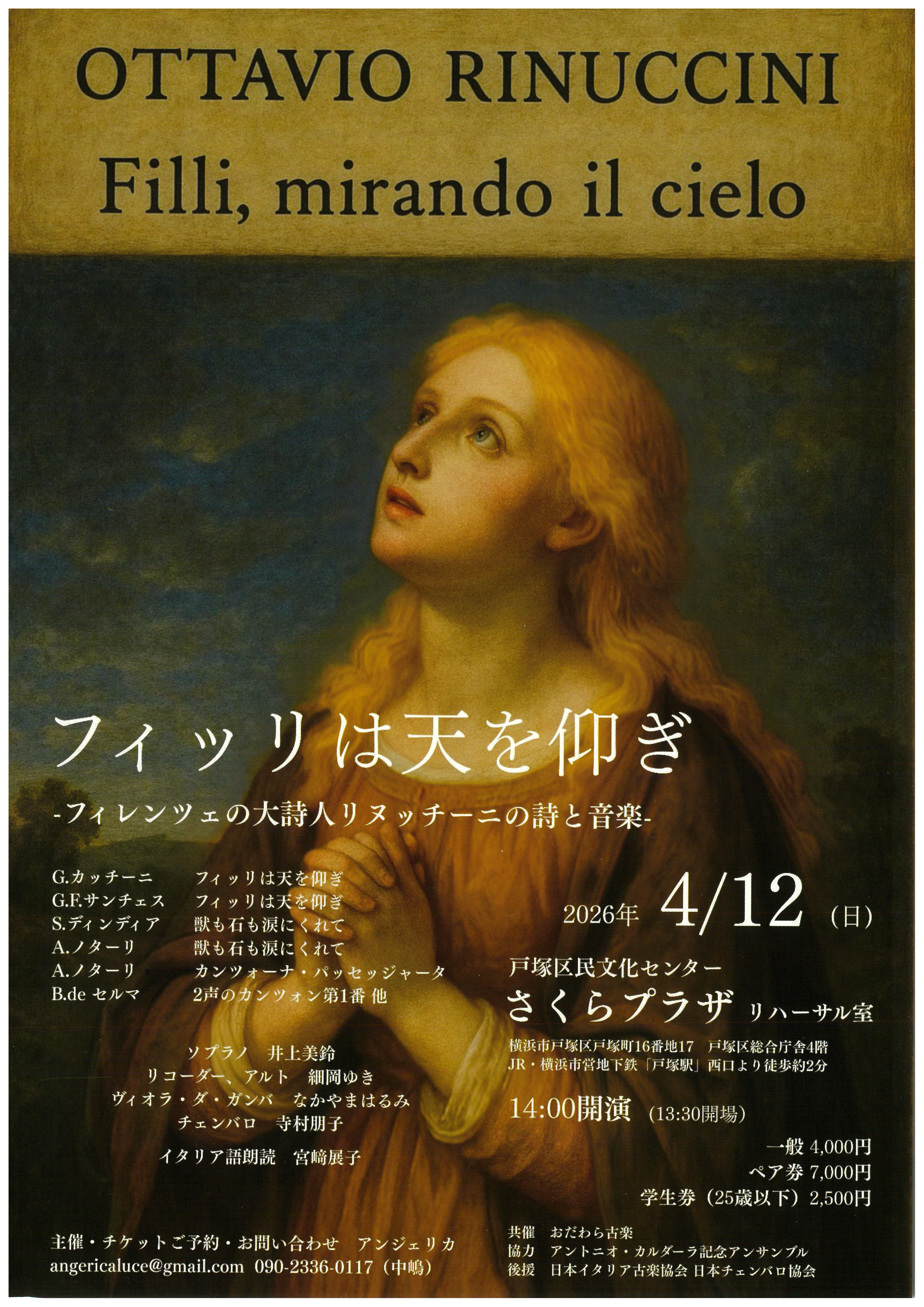 フィッリは天を仰ぎ―フィレンツェの大詩人リヌッチーニの詩と音楽― ※2月12日からさくらプラザ窓口にて販売 |